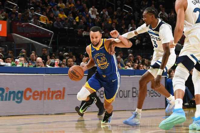 库里复出空砍39分兰德尔27+9 森林狼客场险胜勇士